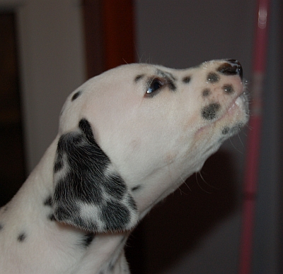 Skotti liittyi joukkoomme marraskuussa 2007. Olen jo pitkään etsinyt itselleni mieleistä dalmatiankoiranpentua ja joutunut useita kertoja pettymään pentuesuunnitelman toisensa jälkeen osoittautuessa vain suunnitelmaksi. Tuntui kuin minua olisi vainonnut joku ihmeellinen kirous kun sopivaa pentua ei meinannut millään löytyä. Sitten kuitenkin kaiken toivomisen ja etsimisen jälkeen löytyi pentue, joka sukutaulullisesti vaikutti erittäin kiinnostavalta. Yhteydenotto kasvattajaan tuotti tulosta ja hän oli suostuvainen siihen, että yksi pennuista muuttaisi meille. Alunperin etsinnässä oli narttupentu, jonka ajattelin tulevan parhaiten juttuun jo olemassa olevan poikaporukan kanssa. Tässä Sassafras-pentueessa ei kuitenkaan ollut jäljellä enää kuin urospentuja, joten ensimmäinen periaatteellinen päätös oli tulevan pennun ”sukupuolenvaihdos”. Ikuisesti olen vannonut olevani uroskoiraihminen, joten päätös ei lopulta ollut vaikea. Ensimmäinen ajatus tulevasta pennusta oli Skottin ruskeapilkkuinen velipoika, Skotti kun oli jo luvattu muualle. Mutta nähtyäni pentujen 5-viikkoiskuvat, jossa Skotti erehdyttävästi muistuttaa omaa Alluani pentuna en voinut olla alkamatta suostuttelemaan kasvattajaa siihen, että saisinkin tämän mustapilkkuisen pienen miehen…